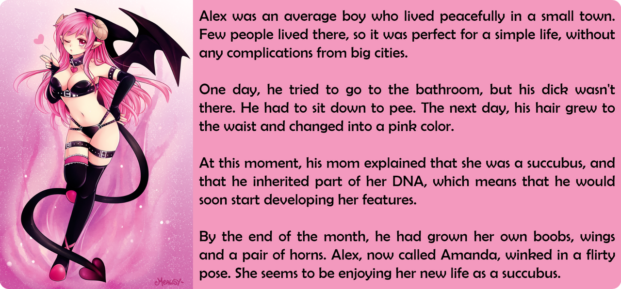 By the end of the month, he had grown her own boobs, wings and a pair of horns. Alex, now called Amanda, winked in a flirty pose. She seems to be enjoying her new life as a succubus.